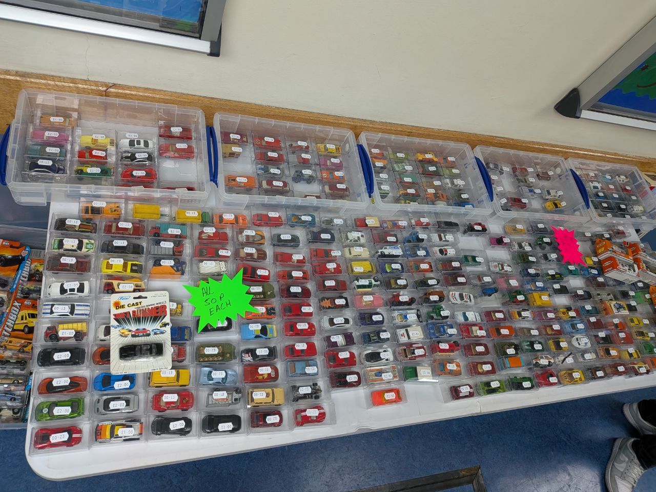 Is that the toy fair in a school at Raleigh @bunglebus? It always looks great and I'd like to go again, but the last time we went the Dartford crossing was shut, so was the Blackwall tunnel and two of the bridges! It took about four hours to get home and put Mrs Concern off the idea.