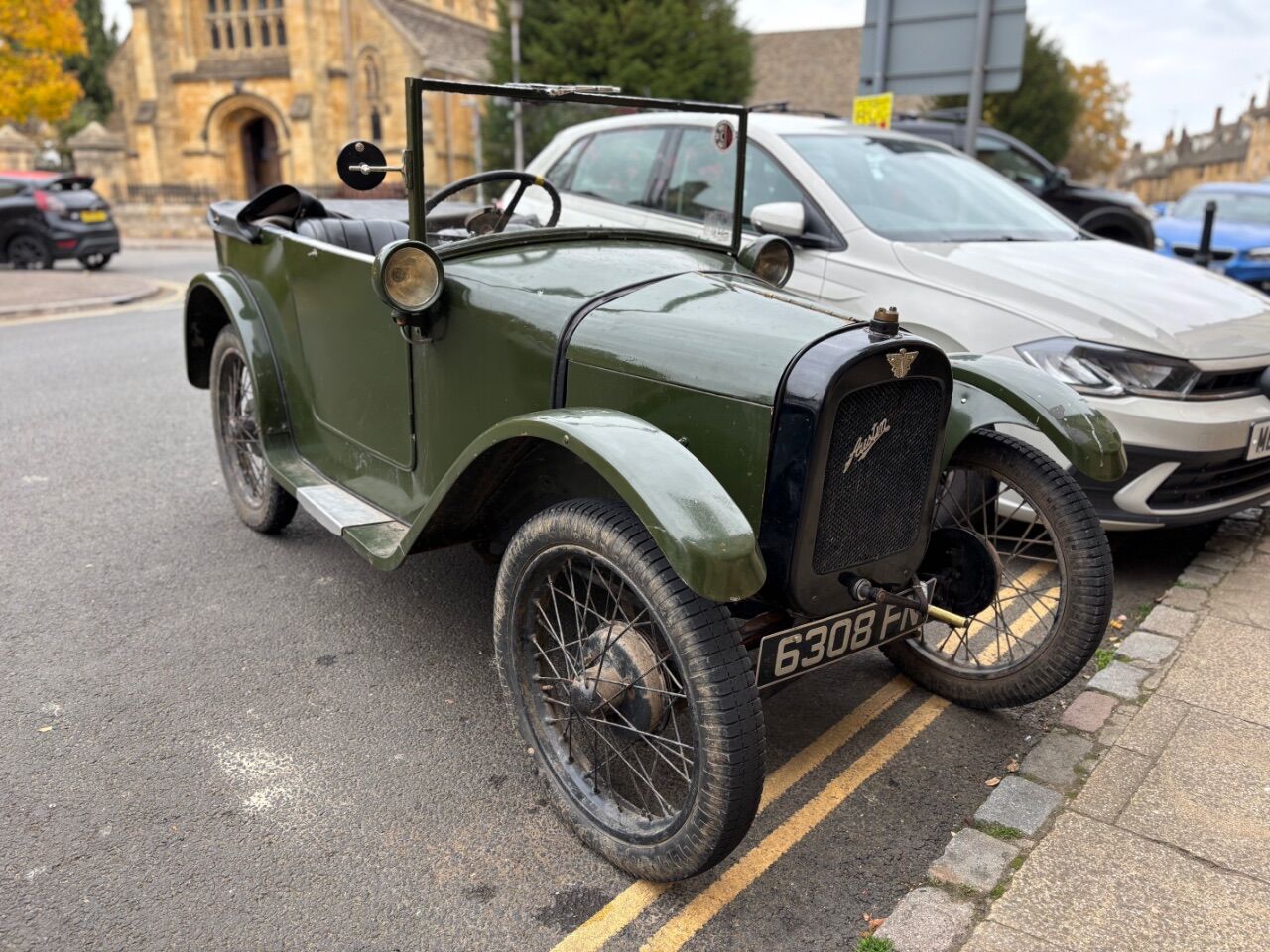 Absolutely miserable weather here today, my phone makes it look  much brighter than it was, but that didn't seem to deter the owner of this lovely dog dick red 924 from going shopping in it.