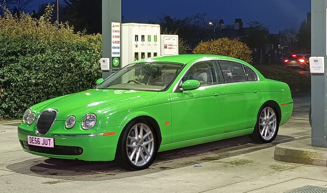 Schaefft Posted Saturday at 19:39 Author Posted Saturday at 19:39 What has also found a new home (mine!) is the latest addition to the fleet, a very late Jaguar S-Type V6 in what is allegedly Dodge's Sublime Green (as found on the Challenger naturally!). It certainly is an interesting color choice for a Jag (it feels right at home at the Asda petrol station lol), as far as I know painted that way for a charity rallye. Despite the acquired taste of the paintjob I couldn't say no to this one as it only has 51k miles and apparently no rust whatsoever. The interior certainly looks like the mileage is true and I have to say that during the drive back from Liverpool I was quite impressed with it. The 6-speed automatic makes it pull almost as well as my 4.0 V8 XJ with the 5-speed from earlier this year and being a late model SE it has all the toys you could probably tick on the order list back then. As always there are a few minor things that need sorting (tired coilpack, 2 pdc sensors, ideally a set of wheels that isn't black...), I don't think this will stick around for too long however. After having owned an XK8, XJ8 and an X-Type recently I just had to scratch the S-Type itch and buy the missing link in my early 2000s Jaguar ownership experience! MAF260, R Lutz, dome and 14 others 17