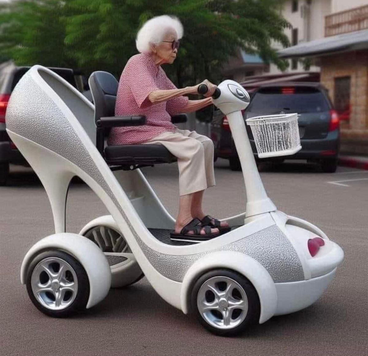 Imelda Marcos with her motorbility scooter.